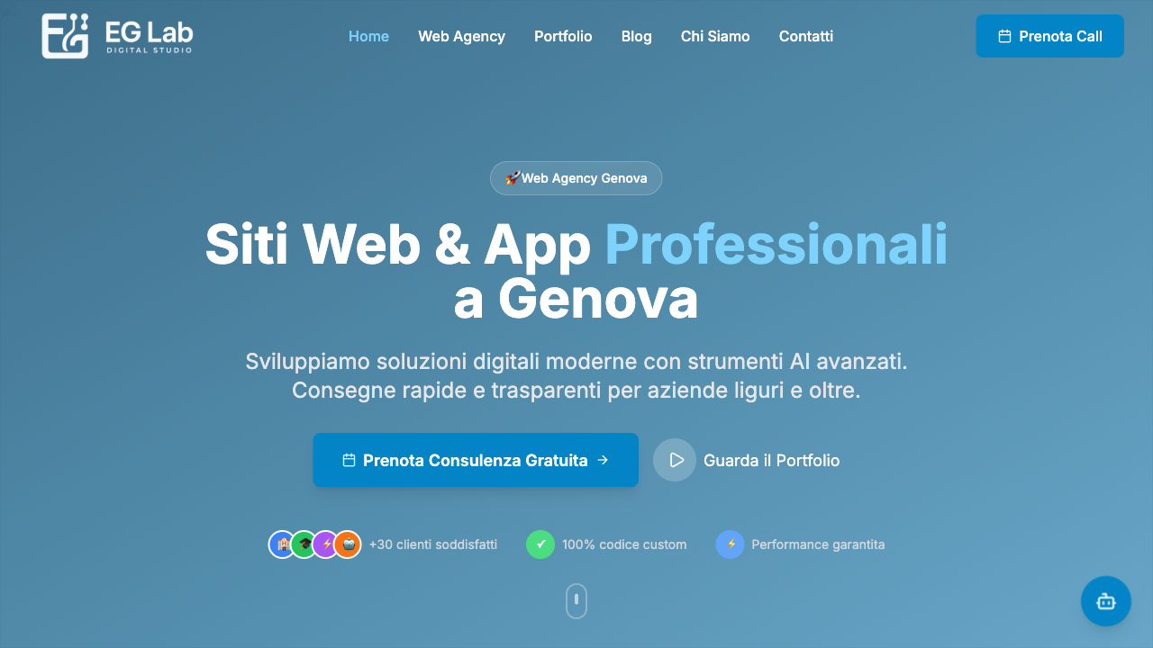 Alessio aveva sviluppato con EG Lab una webapp complessa per l’outreach verso creator e influencer. Serviva una landing page che spiegasse il prodotto, generasse lead qualificati e attirasse investitori per il seed round.